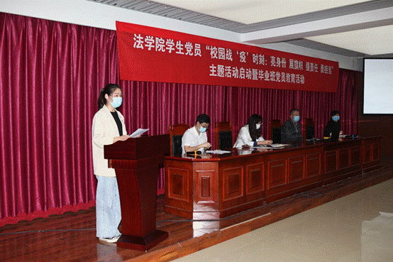 会上还进行了新发展预备党员宣誓仪式和毕业班党员毕业教育。在庄严的《国际歌》后,与会领导、老师和支部书记、支部委员代表为现场的预备党员佩戴了党徽。由研究生党支部书记周作平领誓,在场的正式党员和新发展的预备党员一起庄严宣誓。新发展的预备党员代表、2020届本科生党员袁雪洁在发言中对全体预备党员发出倡议,号召大家在预备期内尤其是当前校园疫情防控工作中,以北大援鄂医疗队90后党员为榜样,牢记入党誓词、践行党员责任、勇于担当作为、甘于服务奉献,努力成长为堪当大任的合格党员。