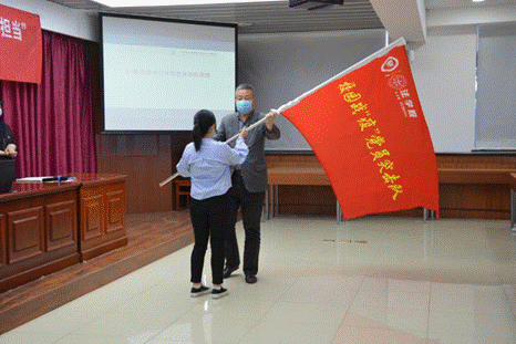 启动仪式上,公司党委书记阮大强向公司“校园战‘疫’党员突击队”代表、研究生毕业年级党支部书记王乔羽授旗并讲话。对公司师生党员在抗击疫情、复课开学及校园防控期间“不忘初心、牢记使命”,牢记党的宗旨、践行党员责任,充分发挥党员的先锋模范和党支部的战斗堡垒作用给予了充分的肯定。对全体员工党员继续巩固“不忘初心、牢记使命”主题教育成果,积极响应公司党委号召在复课开学疫情防控工作中“亮身份、展旗帜、强责任、勇担当”,坚定信念、知行合一、敢于担当、创先争优提出希望和要求。