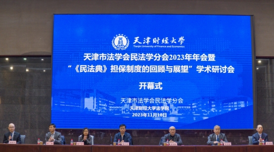 2023年11月18日,由天津市法学会民法学分会主办、天津财经大学304永利集团承办的天津市法学会民法学分会2023年年会暨“《民法典》担保制度的回顾与展望”学术研讨会在天津财经大学G座东厅顺利召开。来自天津市法学会、南开大学、天津大学、中央民族大学、上海师范大学、汕头大学、304永利集团、天津财经大学、天津工业大学、天津医科大学、天津科技大学、天津外国语大学、天津公安警官职业公司,以及天津市红桥区人民法院、天津市河北区人民法院、天津市北辰区人民法院、天津市滨海新区人民法院、中国社会科学杂志社、天津市河西区公证处、天津市和信公证处、天津市滨海公证处、天津市泰达公证处、天津市北方公证处、天津市租赁行业协会、天津市商业保理协会、天津市融资担保业协会、天津银行、中国华融资产管理股份有限公司天津市分公司、上海锦天城(天津)律师事务所、北京中闻(天津)律师事务所、北京炜衡(天津)律师事务所、北京海润天睿(天津)律师事务所、天津张盈律师事务所、天津言如鼎律师事务所、天津随观律师事务所、天津敬东律师事务所、天津金诺律师事务所、天津建嘉律师事务所、天津见安律师事务所、天津华盛理律师事务所、天津东法律师事务所、击水律师事务所、国浩(天津)律师事务所等实务单位的120余位专家学者与实务工作者参会。