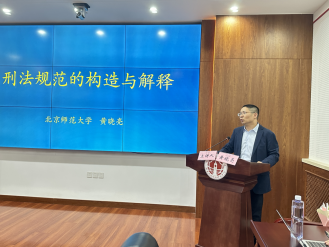 随后,黄晓亮教授围绕“刑法规范的构造与解释”的主题,从刑法规范的存处、属性与解释等方面展开,对刑法规范的构造、解释问题进行了提纲挈领、深入浅出的解读。黄教授首先对刑法规范的基础问题进行了简要介绍。随后,对刑法规范的存处问题作出了分析;对刑法规范的内涵与属性进行了澄清;对刑法规范的不法展开了剖析,最后对刑法规范的解释问题予以了明确。