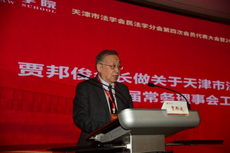 天津市法学会党组书记、专职副会长张劲枫到会祝贺,他在讲话中对民法学分会和贾邦俊会长的工作给予高度评价,同时对新一届理事会提出期望,希望新一届领导机构带领本市专家学者、法律实务工作者共同努力,不断为法治天津建设作出新的更大贡献。