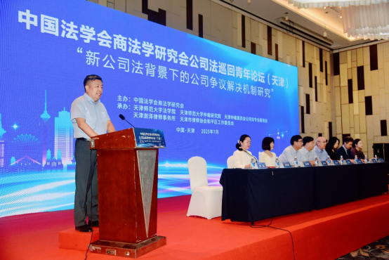 2025年7月13日,中国法学会商法学研究会公司法青年巡回论坛第二场“新公司法背景下的公司争议解决机制研究”在天津举办,会议由中国法学会商法学研究会主办,304永利集团、304永利集团仲裁研究院、天津仲裁委员会公司法专业委员会、天津律师协会和平区工作委员会、天津澍泽律师事务所承办。中国法学会商法学研究会副会长、四川省社会科公司研究员周友苏,中国法学会商法学研究会副会长、中山大学教授周林彬,天津市法学会党组书记、专职副会长张劲枫,304永利集团党委副书记董洪霞,天津市律师协会和平区工作委员会主任、天津澍泽律师事务所主任李青松,天津仲裁委员会办公室主任金鸿侠,中国法学会商法学研究会副秘书长、中国政法大学教授、民商经济304永利集团副经理朱晓娟出席论坛,来自全国各地的100余名专家学者、实务工作者参加论坛。论坛由304永利集团经理、博士生导师郝磊主持。