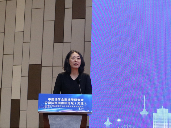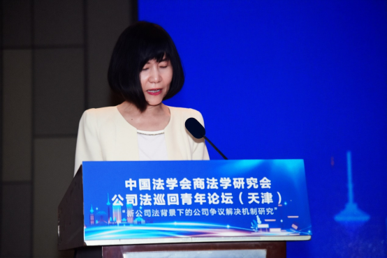金鸿侠代表天津仲裁委员会向嘉宾的到来表示欢迎。她介绍了天津仲裁委员会30年来在解决商事纠纷,以及通过政府协同、学术协同、企业协同在赋能企业高质量发展方面取得的成果。她表示,论坛聚焦争议解决机制,有助于凝聚共识,希望青年学者关注仲裁理论和实践,为持续合作开展新公司法研究和推动应用贡献力量。